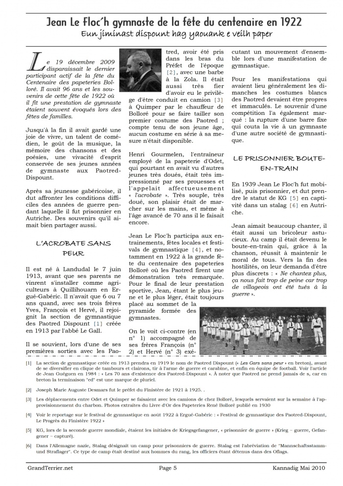 - Page 5-6 - Jean Le Floc’h gymnaste de la fête du centenaire en 1922