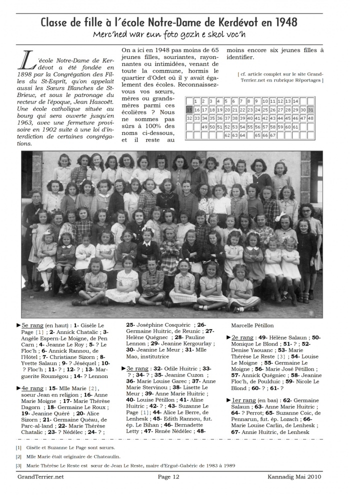 - Page 12 - Classe de fille à l’école Notre-Dame de Kerdévot en 1948
