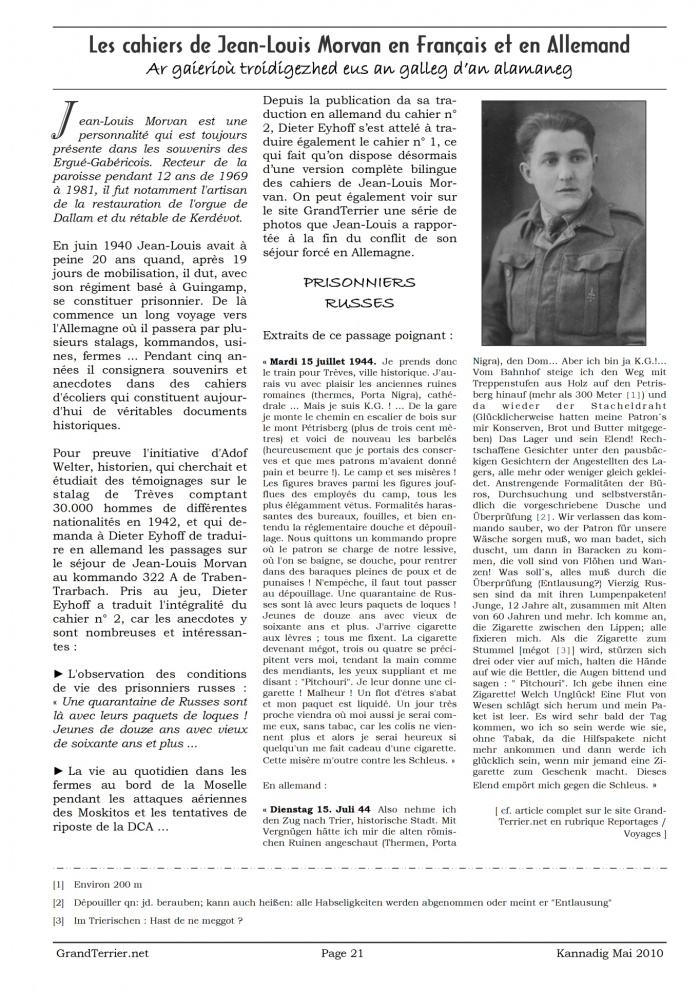 - Page 21 - Les cahiers de Jean-Louis Morvan en Français et en Allemand