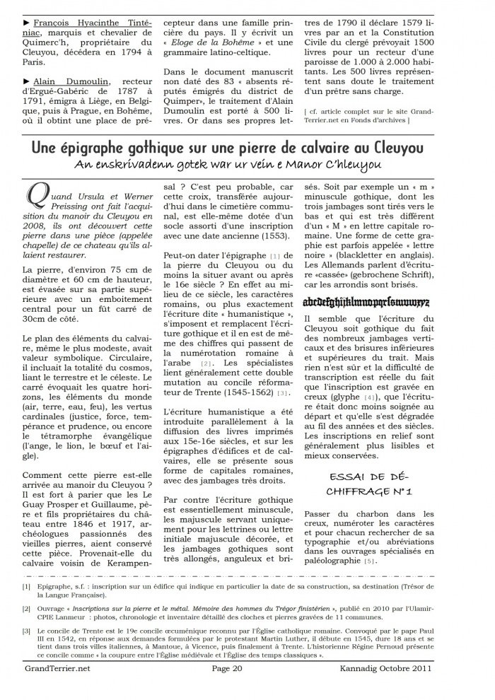 - Page 20-22 - Une épigraphe gothique sur une pierre de calvaire au Cleuyou