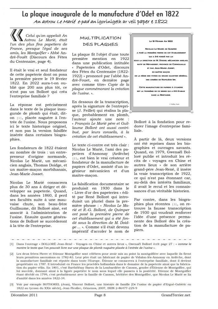 - Page 8-10 - La plaque inaugurale de la manufacture d'Odet en 1822