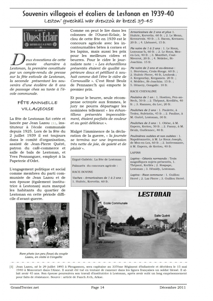 - Page 14-16 - Souvenirs villageois et écoliers de Lestonan en 1939-40
