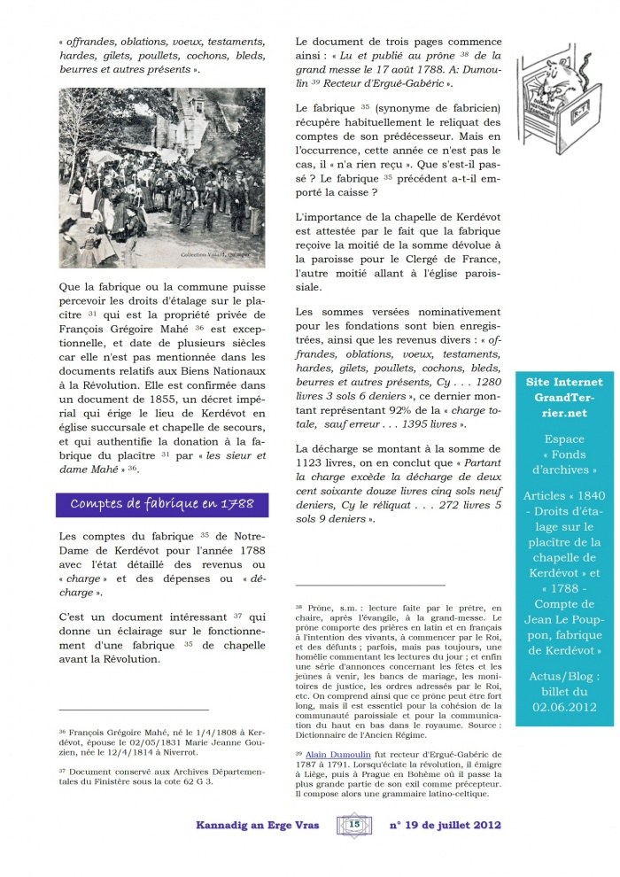 - Page 14-15 - Comptes de fabrique et étalage sur le placître de Kerdévot