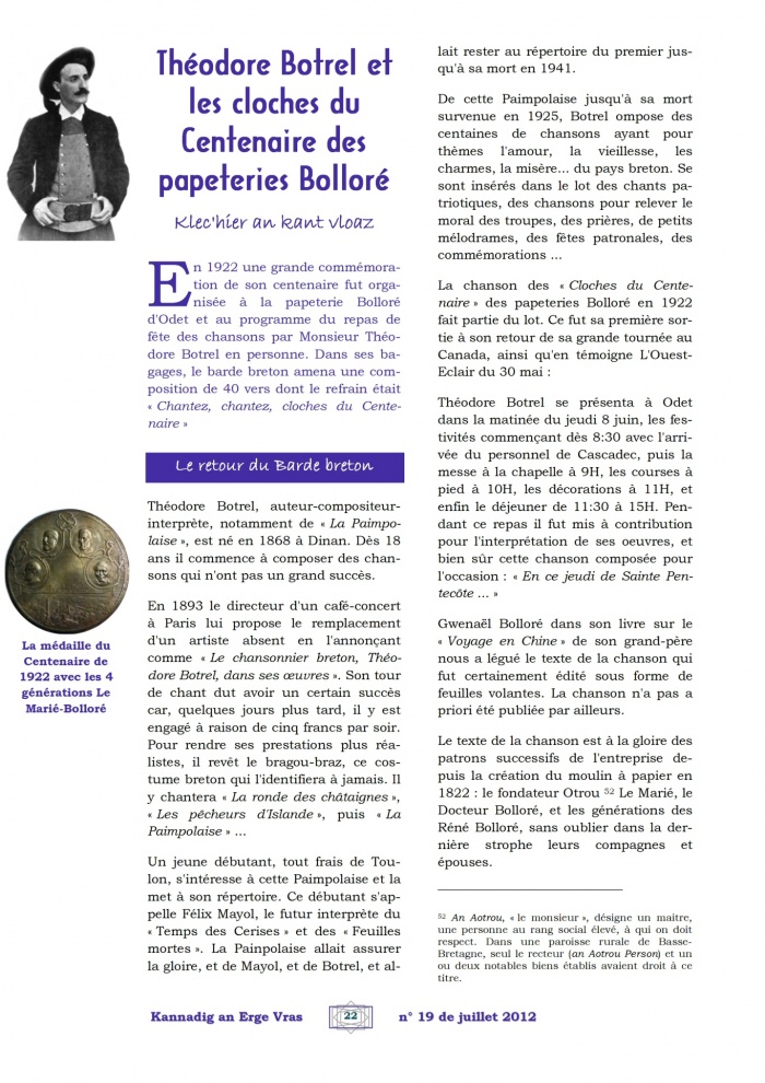 - Page 22-23 - Théodore Botrel et les cloches du Centenaire des papeteries Bolloré