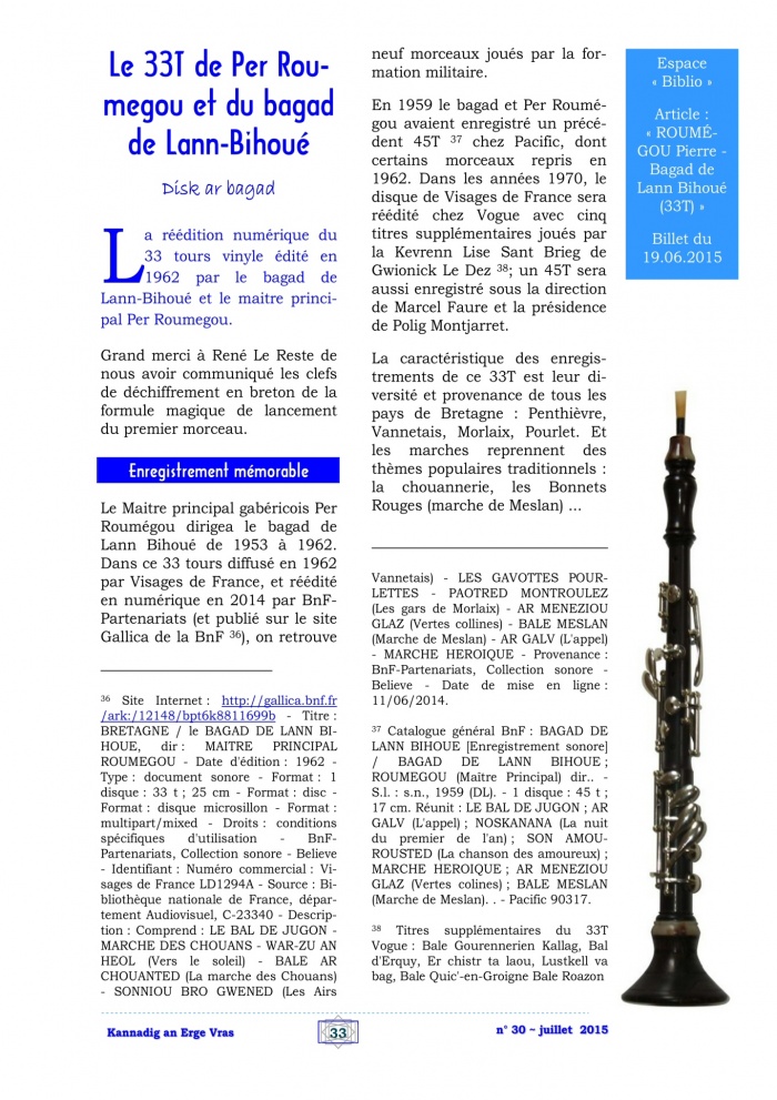 • Page 33-34 - Le 33T de Per Roumegou et du bagad de Lann-Bihoué