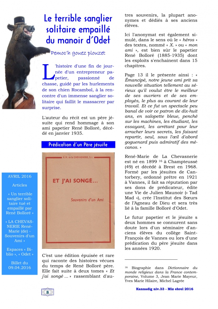- Le terrible sanglier solitaire empaillé du manoir d’Odet, p. 8-10