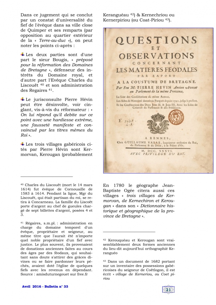 - Matières féodales et mouvances gabéricoises de l’Evêque, p. 20-22
