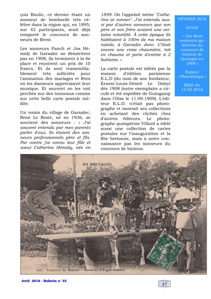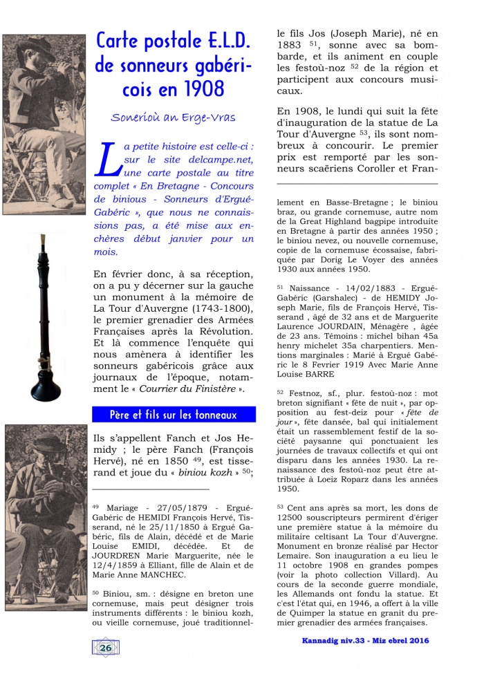 - Carte postale E.L.D. de sonneurs gabéricois en 1908, p. 26-27
