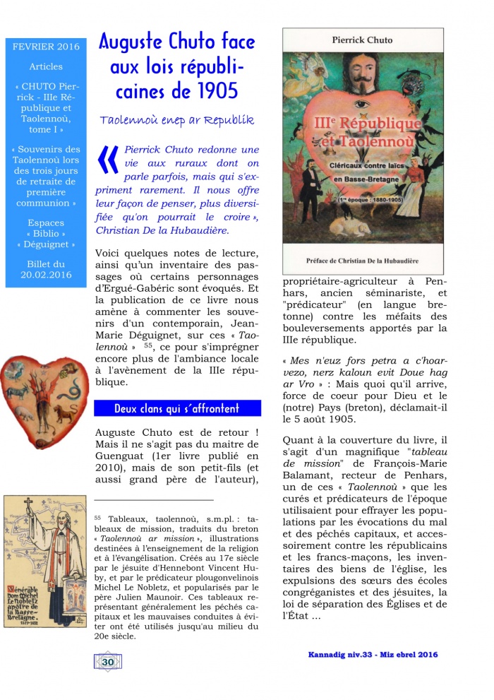 - Auguste Chuto face aux lois républicaines de 1905, p. 30-32