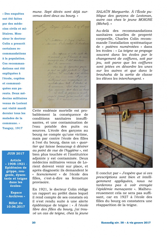 - Rapports sur les épidémies dans les écoles du bourg en 1908-21, p. 19