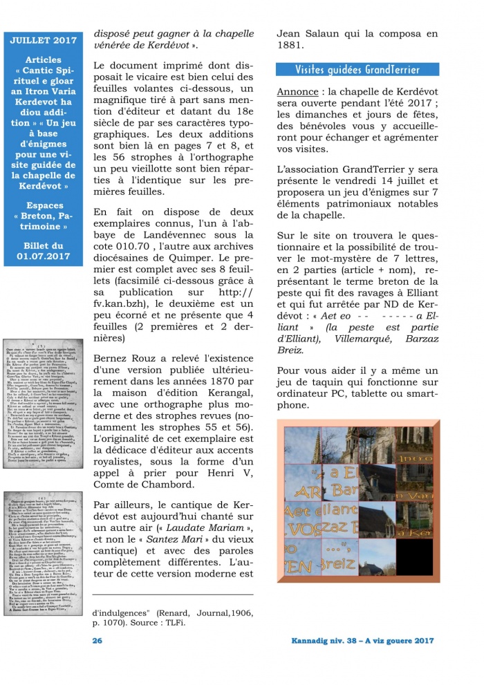 - Cantique ancien et visites guidées à la chapelle deKerdevot, p. 25