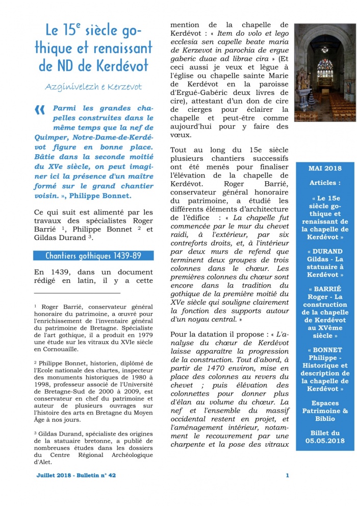 • Le 15e siècle gothique et renaissant de Notre-Dame de Kerdévot, p. 1