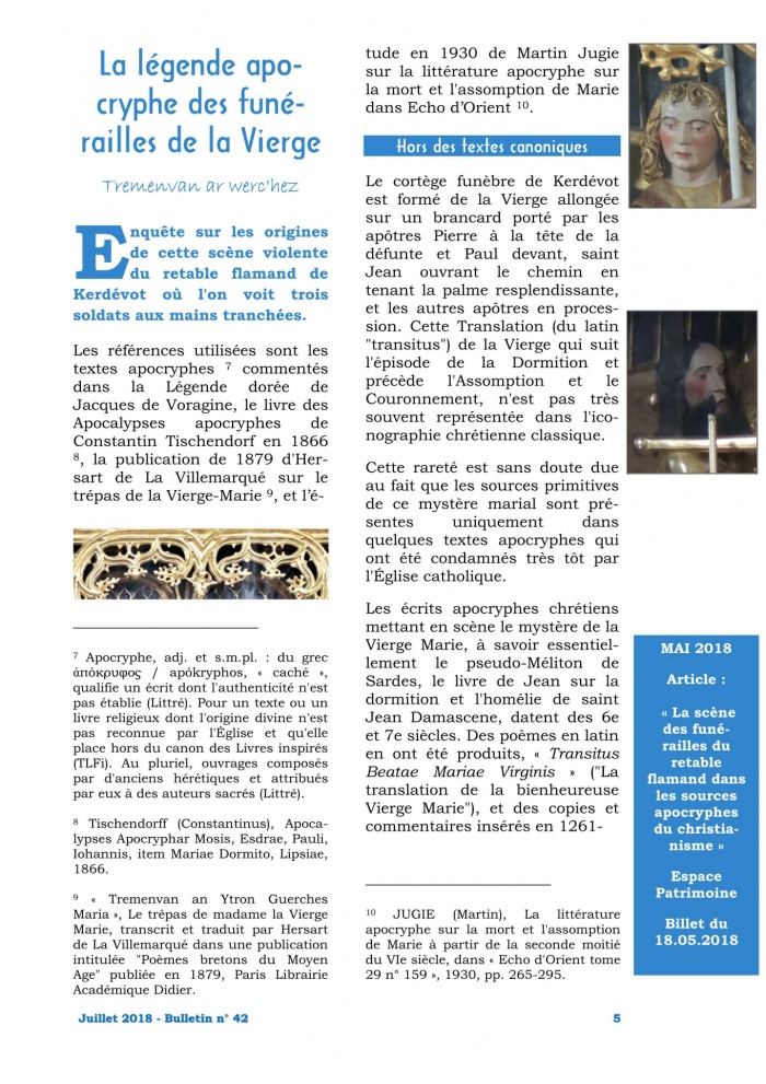 • La légende apocryphe des funérailles de la Vierge du retable, p. 5
