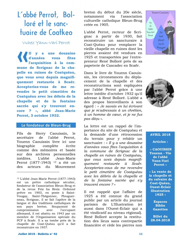 • L’abbé Perrot, René Bolloré et le sanctuaire de Koatkeo en Scrignac, p. 11