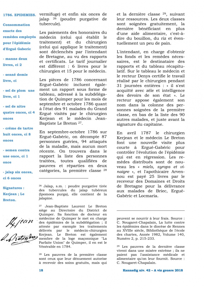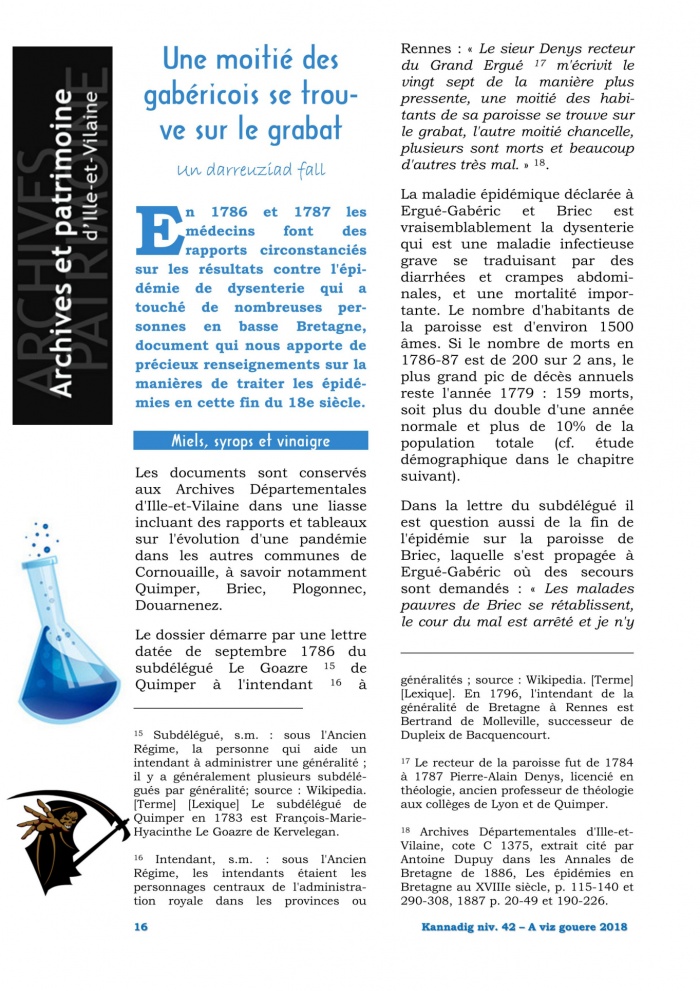 Une épidémie de dysenterie qui fait des morts à Ergué-Gabéric en 1769-1786 et les rapports des médecins sur leur thérapeutique.