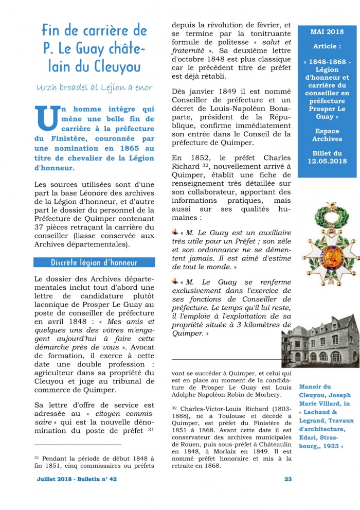• La fin de carrière de Prosper Le Guay châtelain du Cleuyou, p. 23