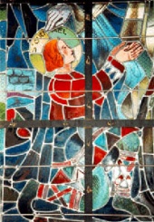 Daté probablement de la fin du XIXème siècle, ce cantique n'est plus chanté aujourd'hui et est inconnu des paroissiens actuels. On trouvera ci-dessous le texte en breton et traduit en français, ainsi que le facsimile manuscrit du cantique. Ci-contre : St-Guenaël agenouillé devant St-Guénolé, vitrail latéral de l'église paroissiale d'Ergué-Gabéric. Autres lectures : « MORVANNOU Fañch - Saint Guénaël » ¤ « Saint Gwenhaël (6e siècle) » ¤ « Saint Guenaël d'Ergué-Gabéric, OF-LQ 1985 » ¤ « Guinal, 115e statue de La Vallée des Saints, Le Télégramme 2017 » ¤ « Chapelle de Kerdévot, sant Telo et Gwenêl en breton, Feiz ha Breiz 1926 » ¤ « Les bannières paroissiales de saint Guinal, ND de Kerdévot, Tonkin, saint Michel et Fatima » ¤ « LE GRAND Albert - La vie de Guen-Ael ou Guenaut » ¤ |