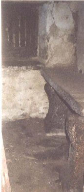 Un autel provenant d'une chapelle inconnue (comme la porte d'entrée) sert de table de travail dans un cellier du bâtiment.