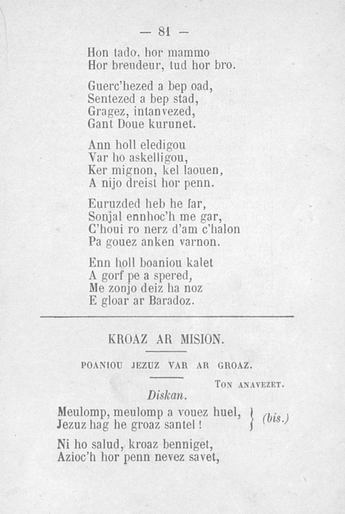 Euz hor breudeur, c'hoarezed, bon tadou hor mammou,