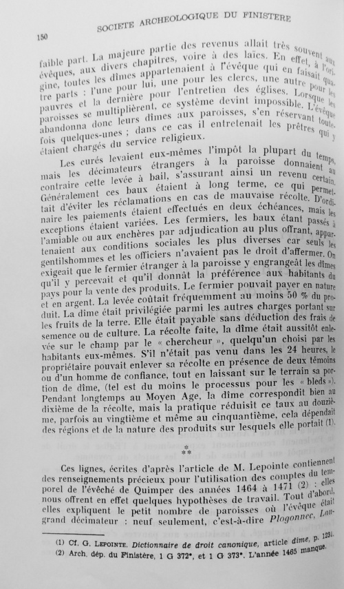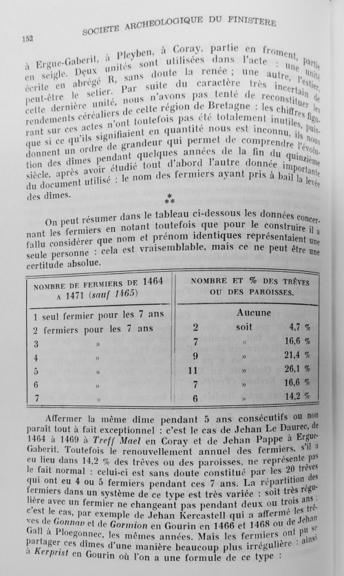 Cet article est paru dans le Bulletin de la Société Archéologique du Finistère en 1973. Il est signé André Levy et couvre sur 10 pages une étude des deux registres du temporel de l'évêché de Cornouailles pour l'année 1464 d'une part et 1466-1471 d'autre part. Il traite surtout des dîmes Pour Ergué-Gabéric on notera les éléments suivants :