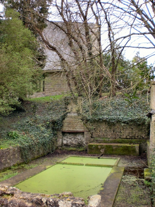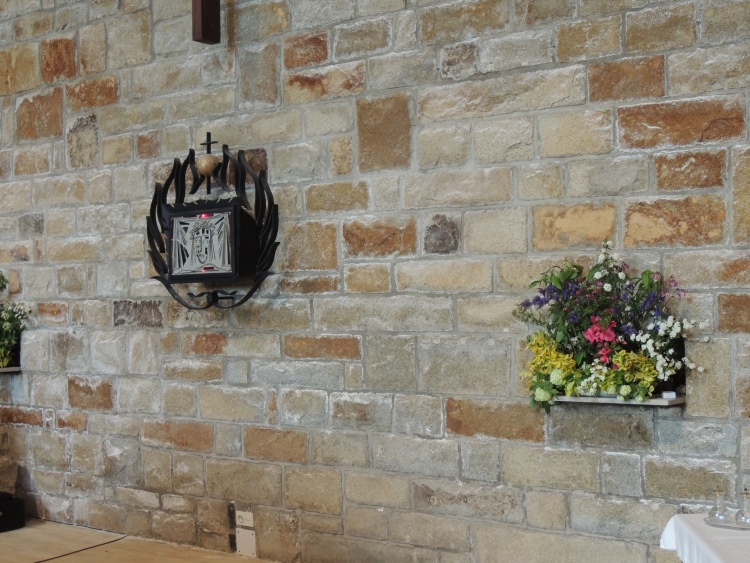 3. Plaquette paroissiale de présentation de la chapelle : « Le mur aveugle du choeur est le seul utilisant la pierre de taille (carrière de granit d'Edern). ». [Ref.↑]