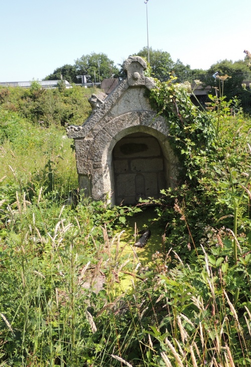 | Une fontaine privée, située près d'un ancien moulin au confluent du Jet et de l'Odet, non loin du château du Cleuyou, et dépendant de l'ancienne propriété du salaisonnier Jean Gouiffès [1].
