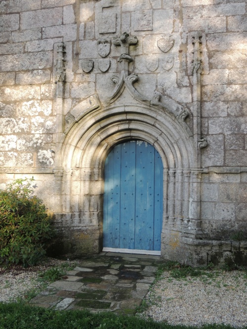 | Le bleu bien particulier des portes de la belle chapelle de Kerdévot, connue pour son grand pardon [1] de début septembre, est au catalogue des 72 couleurs historiques des Peintures Malouinières [2], une entreprise bretonne spécialisée dans les peintures à l'huile pour le patrimoine.