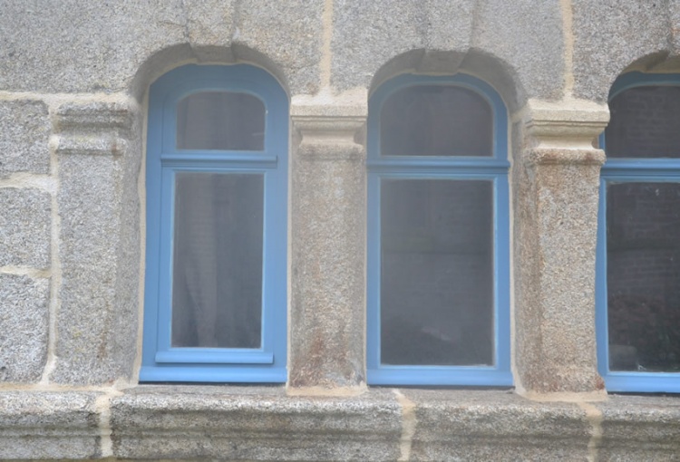 Ce bleu fait partie des 72 couleurs historiques de la Collection Malouinières, fruit d’un travail de recherche de Cécile Mugler et Peter Mallia. Les déclinaisons de cette palette ont été élaborées suite à des demandes spécifiques d’architectes en charge de la conservation du patrimoine français. Le bleu « Kerdevot - J02 » n'est ni un bleu « La Royale - J04 », plus foncé, ni un « bleu de Paris - J01 », tirant sur le vert, et encore moins un vulgaire bleu marine. La présentation dans le catalogue en est très poétique : « Dans le gris du granit, la vie de Finistère n'a de roche que le nom. Kerdevot réveille la rocaille et la mousse qui s'ennuient. L'éternité frémit, elle a vu la lueur. ». La valeur numérique de la teinte tendre de Kerdévot peut être définie par le triplet hexadécimal #3286cc ou par le code couleur RVB 50 134 204, ce qui donne visuellement à l'écran :Les premières réalisations en bleu Kerdévot (© Les Malouinières) sont les deux ossuaires accolés de Plounéour-Trez, l’un de 1664, l’autre du 18e siècle, lesquels ont été restaurés en 2013. C’est l’entreprise Le Ber de Sizun qui a réalisé les travaux de menuiserie. |