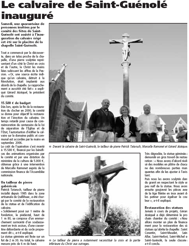 Date de création : 24 septembre 2007 Dernière modification : 7.01.2012 Avancement : [Fignolé] Source : Benoît Bondet de La Bernardie (Télégramme)