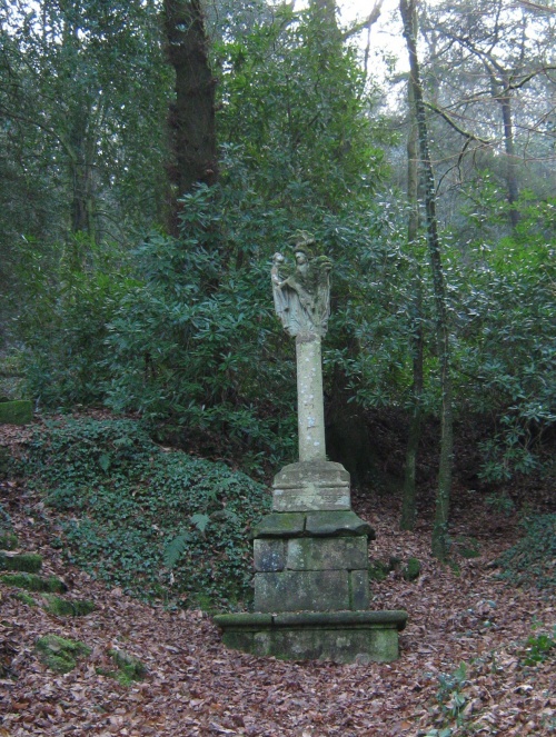 Le plan ci-dessous indique sa localisation par rapport à la propriété de Stang-Luzigou et celles de l'Ecluse. À droite un croquis à main levée réalisé en 2008 par Mann Kerouredan dont le grand-père est né à Stang-Luzigou. Le calvaire est sur le bord du chemin menant à l'écluse qui amorce le canal d'alimentation de la papeterie d'Odet, dans une sorte de dégagement creusé dans la pente en contrebas de Stang-Luzigou, avec sur la gauche un escalier de pierres montant dans les bois. |