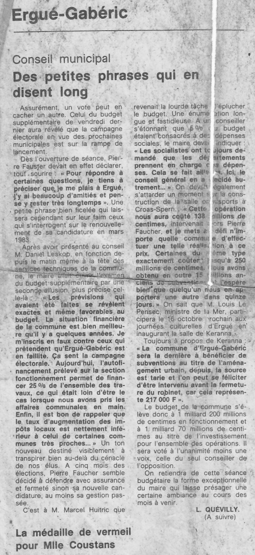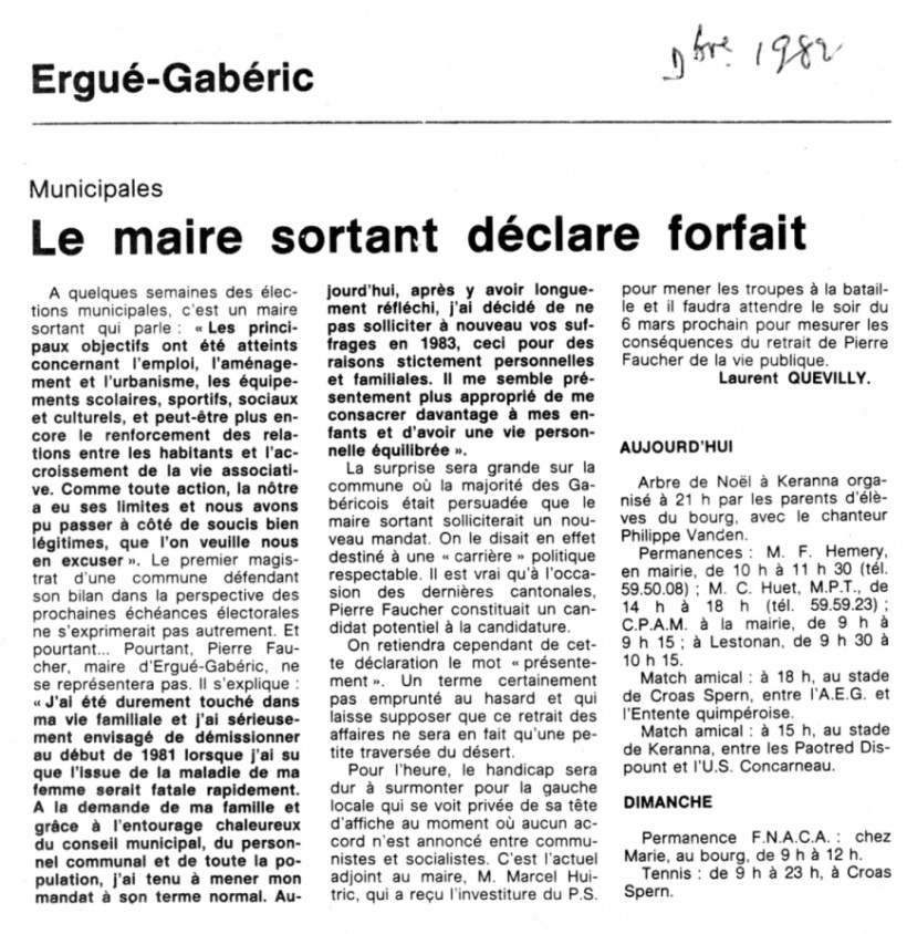 | En octobre et décembre 1982 paraissaient dans les colonnes du Ouest-France deux articles de Laurent Quevilly sur les perpectives des prochaines élections municipales.