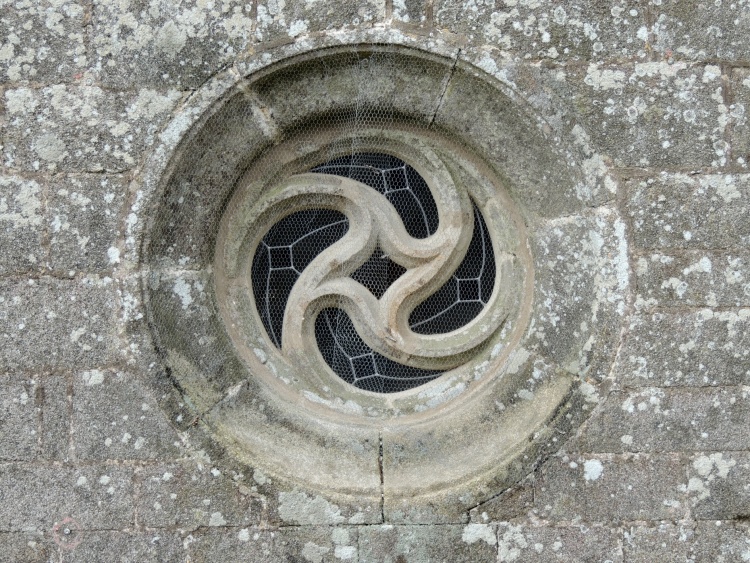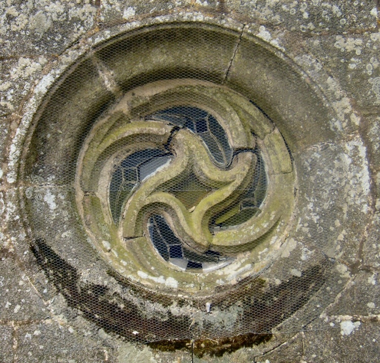 Sans oublier, très près d'Ergué-Gabéric, à la chapelle Ste-Cécile en Briec où le panonceau de présentation précise : « Au sud, la nef est éclairée par une petite fenêtre ajourée en triskell à quatre branches très rare ».