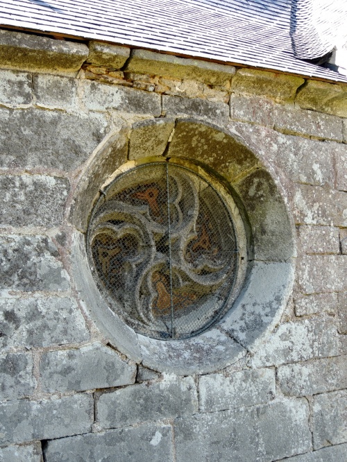 En plein milieu du mur nord de la chapelle, d'un diamètre d'environ 80 centimètres, l’œil de bœuf de St-André est formé d'un motif représentant deux spirales entrecroisées [3] et en mouvement dextrogyre [4] (la figure tourne dans le sens des aiguilles d'une montre, en tout cas dans sa face visible à l'extérieur).