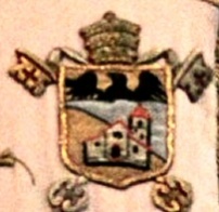 - Blasonnement de Benoît XV : « Tranché d'azur et d'or à l'église d'argent couverte de gueules brochant sur le tout, au chef d'or à l'aigle issant de sable ». [Ref.↑]