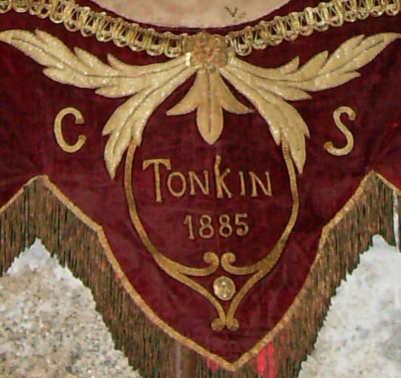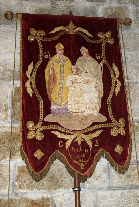 En référence une enquête documentaire récente « La paroisse d'Ergué-Gabéric (Finistère) possède de belles bannières de la fin du XIXe-début XXe siècle et consacrées à la Vierge et à saint Michel, mais dont l'une, peut-être unique en France, porte la mention Tonkin 1885 : une petite énigme pour les esprits curieux ». On trouvera ici une sélection de photos de ces bannières de procession (prises en 2008 et précédemment), le résumé des travaux du bloggeur | ||||||