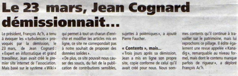 - "ce site ne correspondait pas à notre souhait de proposer des données solides" : je ne peux pas m'empêcher de citer la même personne, à savoir le discours du nouveau président au pot du nouvel an le 20 janvier 2007 : "Il y a ceux qui ont créé en 2006 notre nouveau site Internet « arkae.org » et ceux qui l’alimentent. En moins d’un an, il a vraiment fière allure. Et bientôt, tout ce qu’on peut savoir sur l’histoire d’Ergué va s’y trouver sous forme de documents bruts, de cartes, de photos ...". Un discours qui aurait changé du tout au tout entre janvier et mars ?
