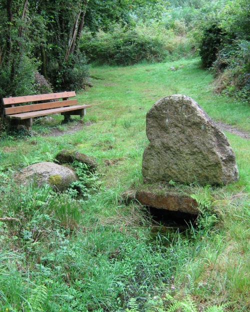 Cette fontaine, agrémentée d'un petit menhir protecteur, se trouve sur le joli chemin bucolique de Quillihouarn à Guilly Vihan. Le ruisseau dans laquelle se jette l'eau de la fontaine, lequel ruisseau est un affluent du Bigoudic. |