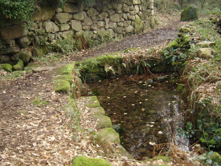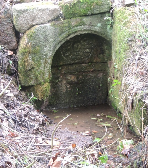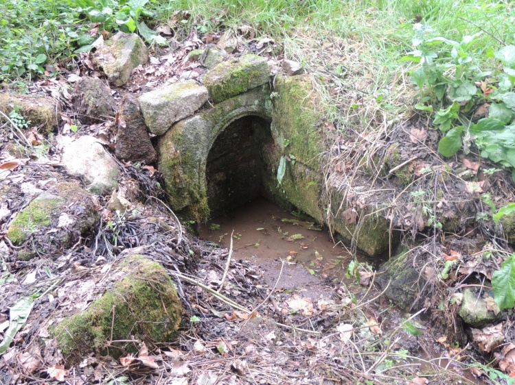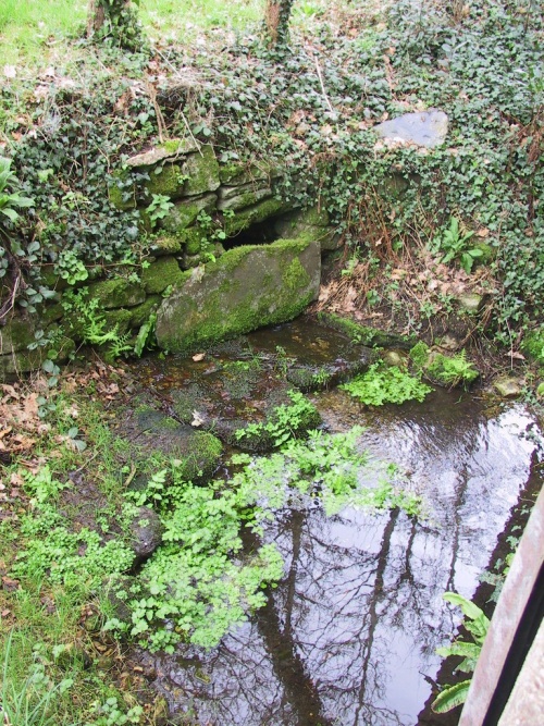 La jolie fontaine de Stang-Luzigou le long du canal de la papeterie d'Odet et du chemin ombragé de l'écluse de Meil Coat-Piriou. |