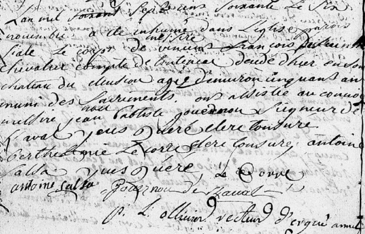 Autres lectures : « Archives du Cleuyou » ¤ « Le manoir du Cleuziou/Cleuyou » ¤ « ROGEL Christian - Le manoir du Cleuyou en Ergué-Gabéric » ¤ « BAFFAIT Bernard - Le Chevalier Kerstrat, Chouan des Lumières » ¤ « PÉRON Goulven - Le clergé de Laz de 1754 à 1800 » ¤ « 1792-1795 - Liste des citoyens absents et réputés émigrés » ¤ « 1762 - Dénombrement du Cleuziou et Kerempensal par François Hyacinthe de Tinteniac » ¤ « MACÉ DE VAUDORÉ Jean-François (de) - Noblesse de Bretagne et du Comté Nantais » ¤ « 1742 - Inhumation illégale de Marie Duval de Lezergué dans l'église paroissiale » ¤ « VILLEMARQUÉ Théodore Hersart (de la) - Le Barzaz Breiz » ¤ « 1794 - Estimation du manoir et dépendances du Cleuyou » ¤ « 1795 - Ventes aux enchères du manoir du Cleuyou » ¤