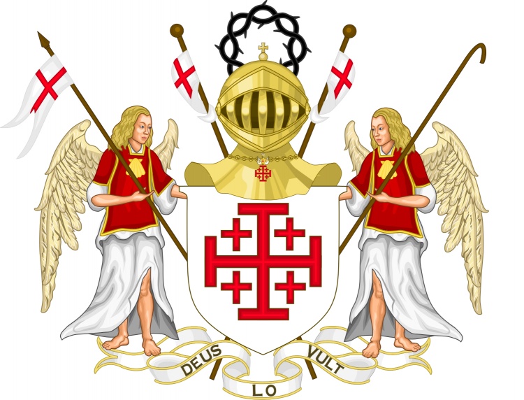 Dans la charte apocryphe Toujours est-il que la croix blasonnée de la famille Cabellic qui a donné son nom à la paroisse d'Ergué-Cabellic (puis Gabéric), pose question, car sa symbolique ramène en ces temps troublés de la fin des croisades en terre sainte de Jérusalem. Ce n'est ni la croix pattée rouge des templiers, ni la croix blanche sur fond rouge des hospitaliers (ni de Malte). Les croisettes et la croix potencée des Cabellic sont bien le symbole par excellence de Jérusalem et évoque le troisième ordre religieux et de chevalerie, après les Templiers et les Hospitaliers, à savoir l'Ordre du Saint-Sépulcre fondé par le croisé Godefroy de Bouillon et dont on trouvera le contexte historique ci-dessous. |
