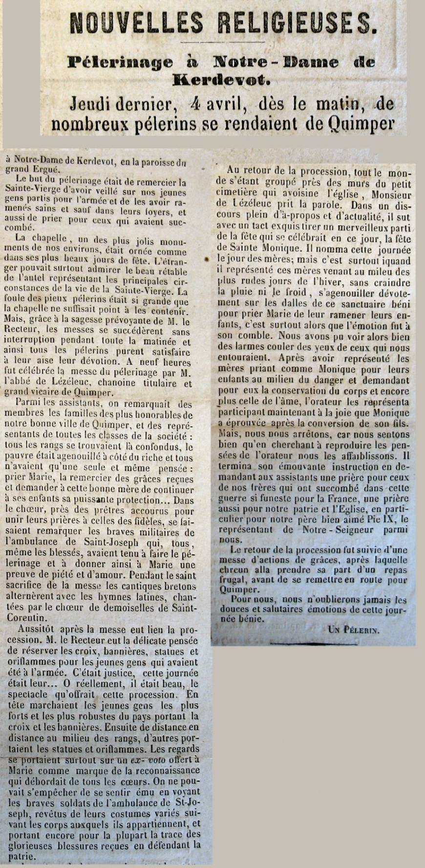 Pèlerinage à Notre-Dame de Kerdévot, l'Impartial du Finistère 1871