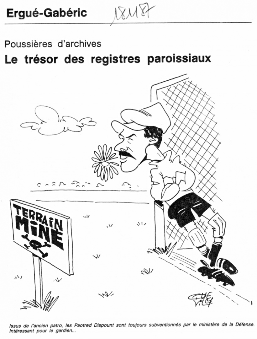| Le 18 novembre 1987, paraissait dans les colonnes du Ouest-France un article de Laurent Quevilly sur les secrets des registres paroissiaux.