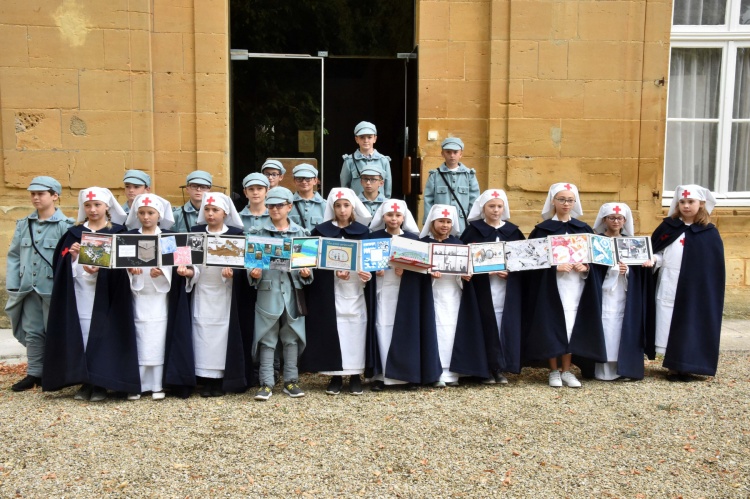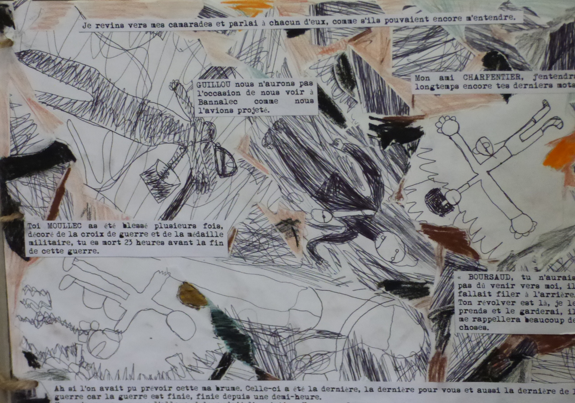 Sur 15 pages grand format, les textes, extraits du discours d’Eugène Perrot prononcé lors d’une précédente commémoration du cinquantenaire, accompagnent leurs dessins d'enfants : « Je revins vers mes camarades et parlai à chacun d'eaux, comme s'ils pouvaient encore m'entendre » ; « Toi Moullec tu as été blessé plusieurs fois, décoré de la croix de guerre et de la médaille militaire, tu es mort 23 heures avant la fin de cette guerre. ».