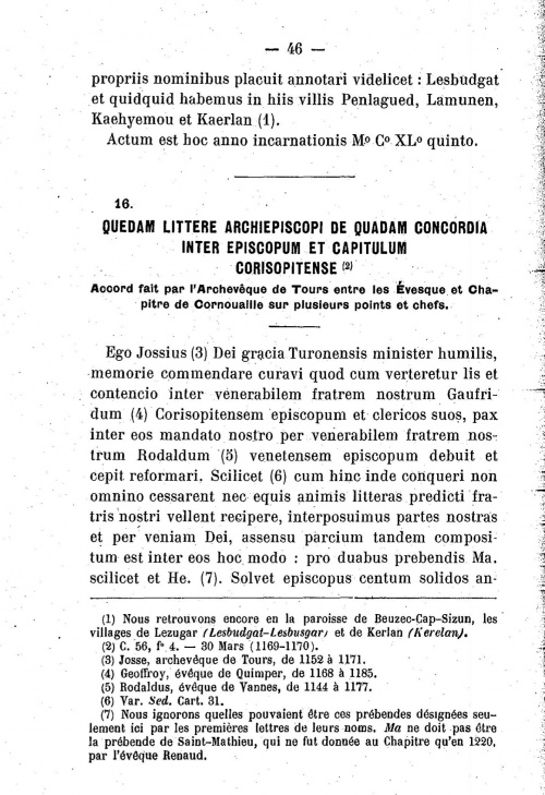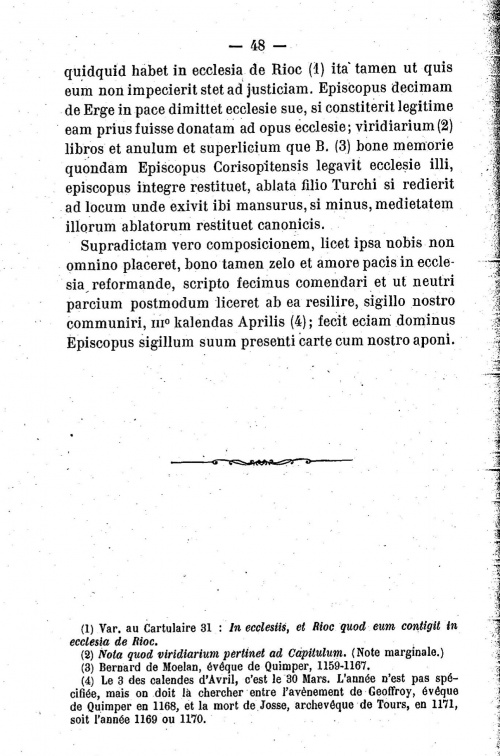 Documents originaux dans l'article « 1169-1170 - Restitution de la dîme d'Erge par l'évêque dans le cartulaire de Quimper » ¤
