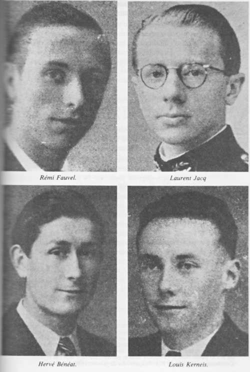 Laurent Jacq, un ancien de "Polytechnique", père de deux petites filles, attaché au service du Génie Rural, dirige l'équipe formée par ailleurs de Léon Dolley, employé également au Génie Rural, de Hervé Bénéat, un élève-maître, de Jean Le Corre, footballeur au Stade Quimpérois, de Jean Le Bris, commis d'architecte, frère d'Antoine [1], de François Balès, le boulanger d'Ergué-Gabéric, et de son inséparable Pierre Le Moigne. Sept au total. Ils ont minutieusement préparé, minuté le coup de main.