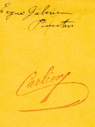 Ferdinand Carlier est né à Versailles en 1820 et décédé en 1893. Il est membre de la Société française de photographie de 1859 à 1864. En 1860, il devient le photographe de l'Ecole des Beaux-arts. Il dispose de nombreux ateliers : à Vannes (16 place Napoléon) à la fin des années 1850-1860, à Auray en 1858, et à Paris (3 rue Saint Paul en 1869, 5 passage Saint Louis vers 1871, 113 rue du Cherche Midi et 170 rue Saint Antoine dans les années 1870-1880, et enfin 9 rue de Bagneux au début des années 1890). En 1858 il publie un recueil : « Vues de Bretagne et du Maine, militaires, portraits divers ». Le Musée d'Orsay détient une collection de ses clichés de la restauration de l'abbaye du Bon Port dans l'Eure. |