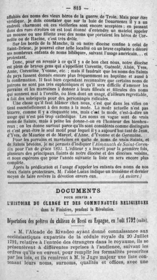 Etude sur les prêtres réfractaires, extraits de la Semaine Religieuse :