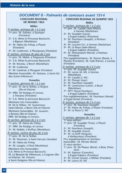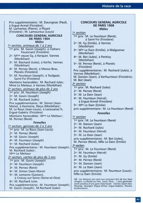 Un ouvrage très bien fait qui explique dans le détail les origines de la vache bretonne pie-noir, notamment quand elle s'appelait « gare Et page 45 et 45 nous découvrons même des noms d'agriculteurs gabéricois récompensés aux concours de Quimper en 1893 et de Paris en 1904, à savoir Louis Guyader de Squividan, Jean-Marie Le Roux du Bourg, MMe veuve Yves Feunteun, Corentin Signour de Kerroux (tous quatre en 1893, certains cumulant plusieurs prix), et Jean-Louis Le Roux de Lezouanac'h (en 1904, mais aussi en 1893 dans la catégorie "Cidres de Bretagne").