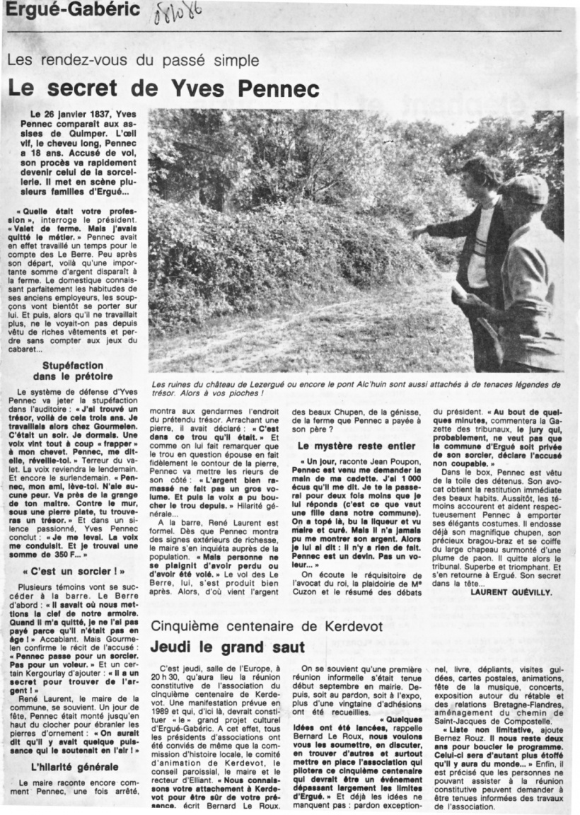 | Le 8 octobre 1986, paraissait dans les colonnes du Ouest-France un article de Laurent Quevilly sur l'histoire d'Yves Pennec.