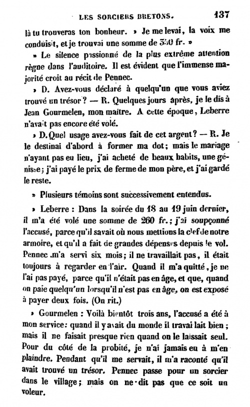 Autres lectures : « Un sorcier - Moeurs bretonnes - Ce que vaut une fille, Gazette des Tribunaux 1838 » ¤ « BERNARD Norbert - Les voix d'Yves Pennec » ¤ « 1838 - Procès d'Yves Le Pennec, jeune domestique voleur, sorcier et dépensier » ¤